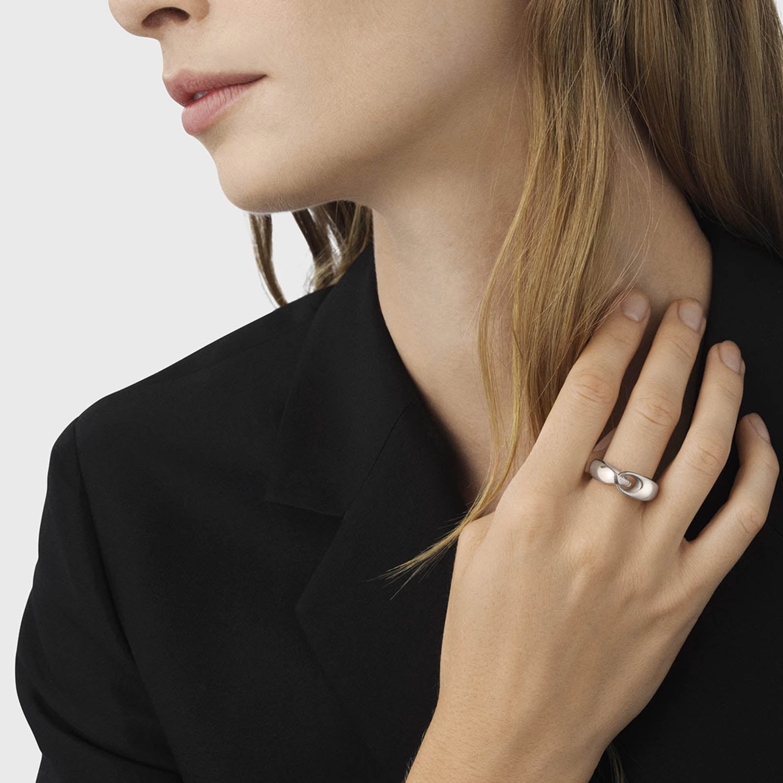 A collection of versatile chains that adds edge to any ensemble. Designed by Jacqueline Rabun for Georg Jensen, each piece acts as an extension of your unique personality. The two ends of a single piece of sterling silver wrap around the finger before linking together to form this striking sterling silver ring. Referencing the traditional chain design, the ring is created by Jacqueline Rabun and works beautifully as a statement piece on its own or when stacked with others. Product details Item number: 20001092 Materials: Sterling Silver Measurements: W: 8.5 mm / 0.33 inches. Design year: 2022
