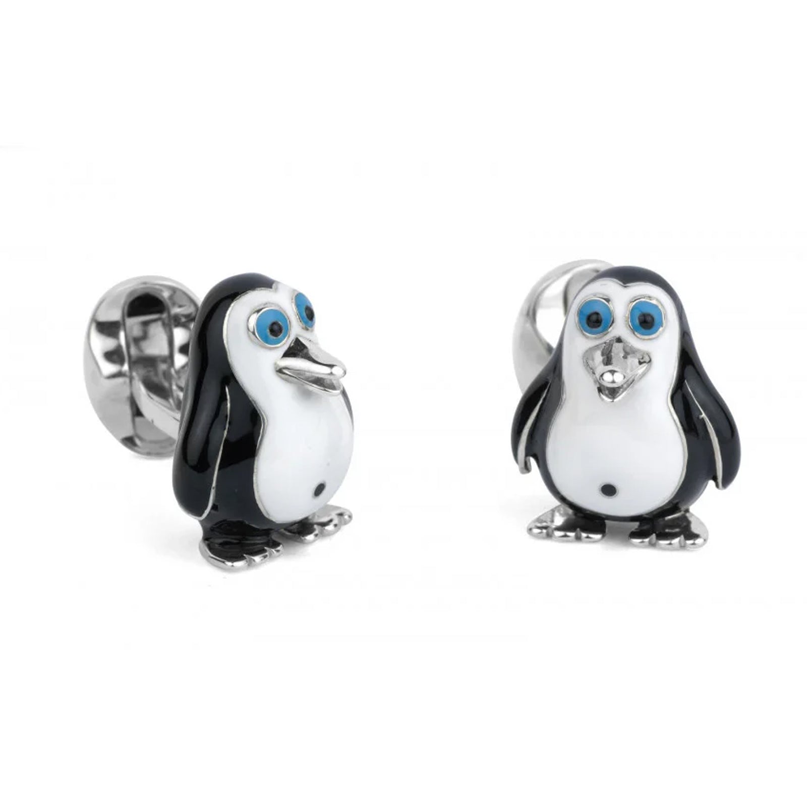 The famous penguin cufflinks are a best seller all over the world. His chubby body, hand-enamelled brown body, bright blue cabochon sapphire eyes, silver flippers and belly button make him an attractive addition to your cuff and a perfect gift for penguin fans everywhere!