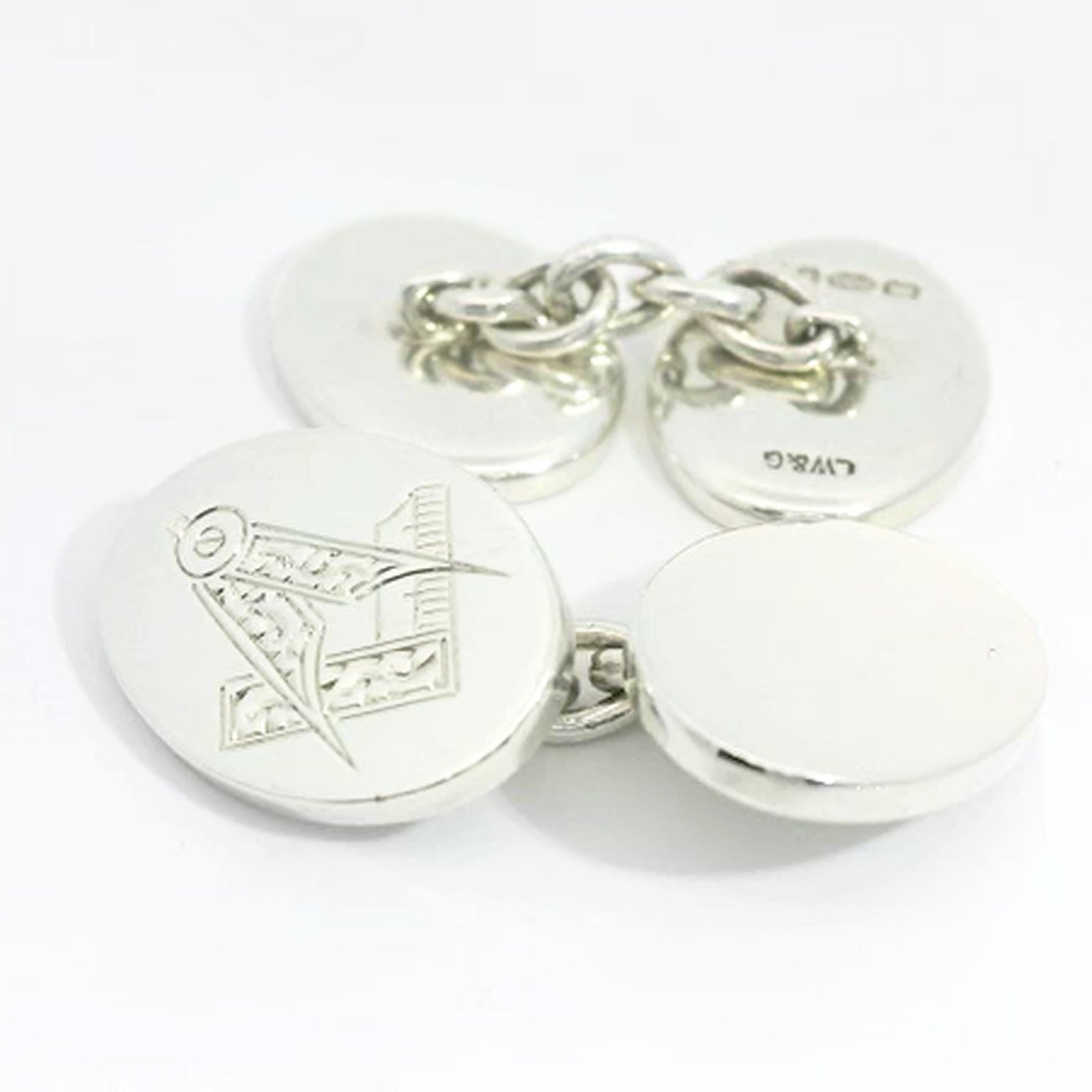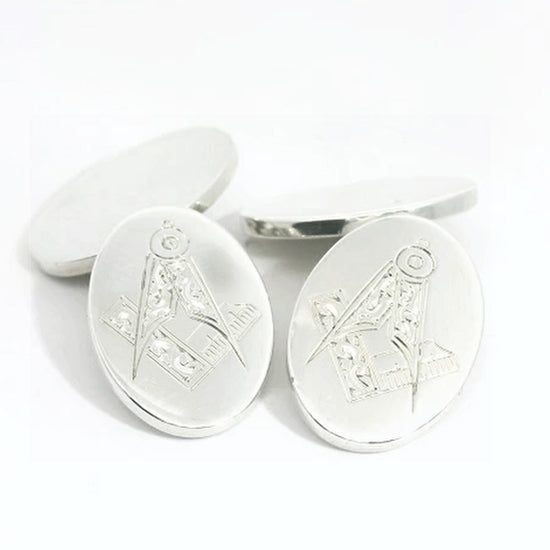 Silver Oval Chain lnk Plain and Engraved Masonic Cufflinks