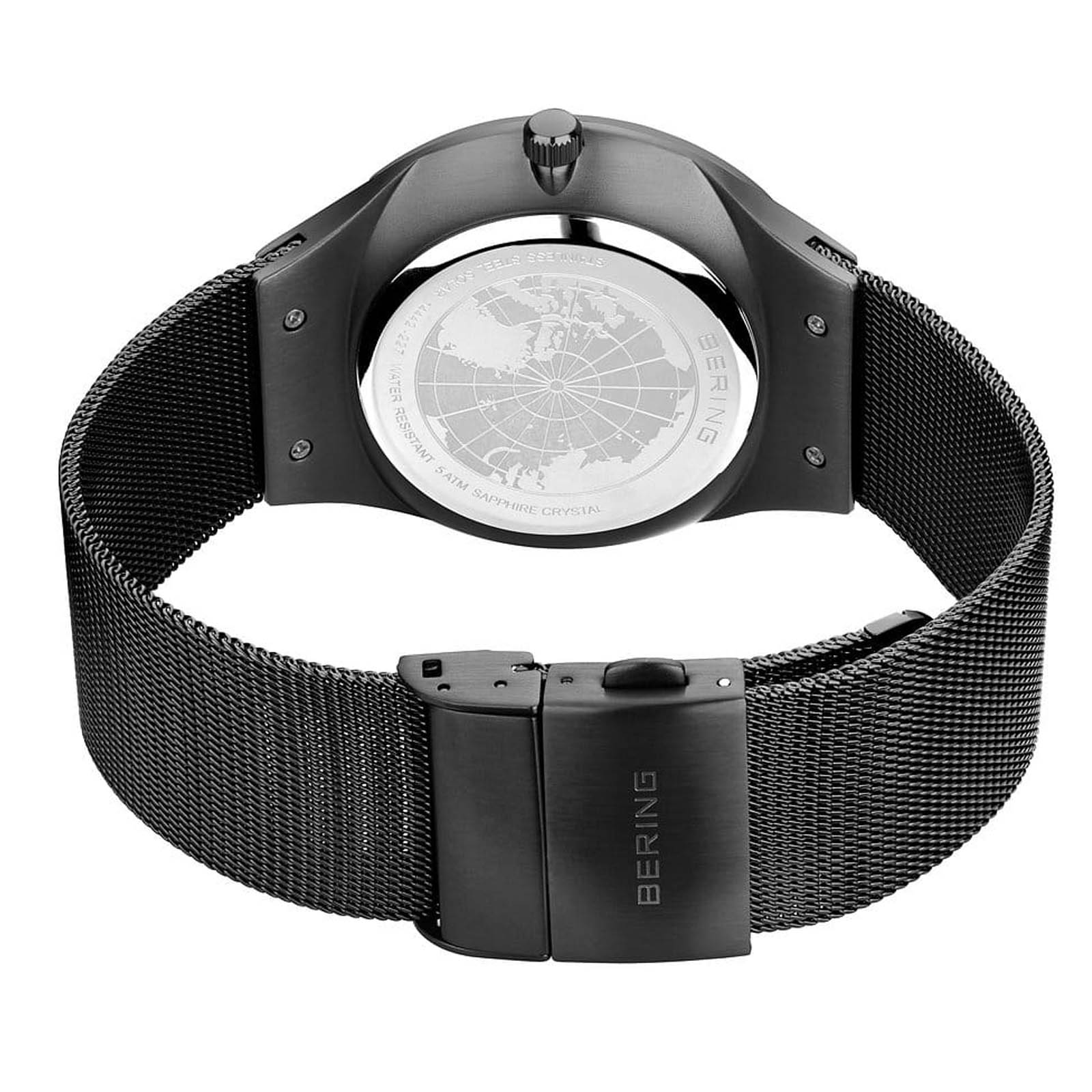 Stylish strength in blue and black – a watch powered by light. This men’s watch from the BERING Solar Collection combines masculine elegance with sustainable technology. The deep blue dial features clear indices, Arabic numerals at 12, 3, 6, and 9, and a date window at three o’clock – balancing functionality with refined design. The polished and brushed black stainless steel case measures 42 mm in diameter and 9 mm in height – bold yet comfortable to wear. The black Milanese strap with folding clasp integrates seamlessly into the overall look, adding a modern, urban touch. At its core, a reliable solar movement charges with sunlight or artificial light and runs precisely for months without a battery change. Flat sapphire crystal protects the dial from scratches, while 5 ATM water resistance makes it a practical everyday companion. Collection: Sale Product type: watch Gender: male Glass type: flat sapphire crystal Movement type: solar Case colour: polished/brushed black Case material: stainless steel Case length: 47mm Case height: 9mm Case width: 42mm Case diameter: 42mm Case type: oval Strap colour: black Strap material: Milanese Strap length: 175mm Strap width: 23mm Clasp: folding clasp Dial colour: blue Water proofness: 5 ATM