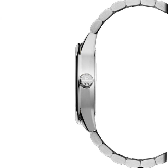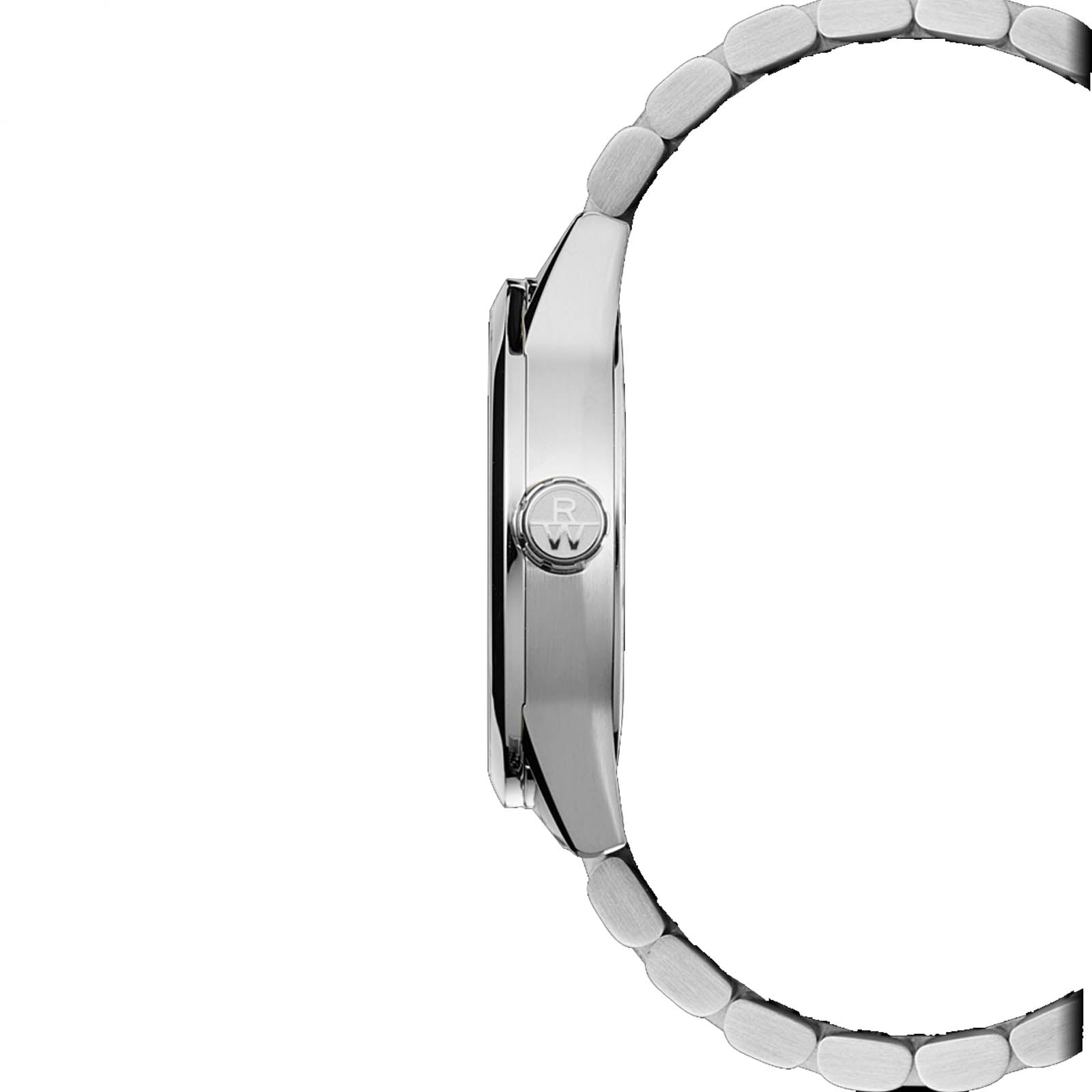 Equipped with a mechanical automatic winding movement housed in a 42mm-diameter case, this timepiece features a captivating and elegant blue dial punctuated by a date function at 3 oclock. This stainless steel bracelet with a double-push security system folding clasp and screwed-down crown embossed with the Brands signature RW monogram adds a touch of refinement and classicism to this automatic date watch. Size 42mm Collection Freelancer Shape Round Movement Automatic Power Reserve 38 hours  Movement Caliber Height 4.67 Water Resistance 10atm Crystal Sapphire Dial Blue, with indexes Crown Screwed-down, with RW logo Bracelet Strap Stainless steel Clasp Stainless steel folding clasp with double push-security system