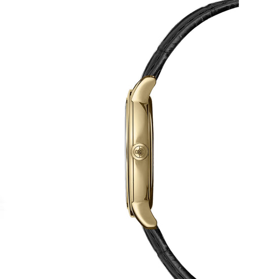 Equipped with a quartz movement, this toccata ladies's watch features a stainless steel 29 mm case with yellow gold PVD plating and a date window at 3 o’clock. The white lacquered dial is set with applied Roman numeral indexes and has a railway-track chapter ring that aids readability. To complement this modern classic, alligator motifs have been added on the strap. Refined design and timeless materials: the toccata collection celebrates the artistic and musical spirit behind the Brand’s DNA. Following in the footsteps of the great composers, toccata timepieces promote the Swiss horology of RAYMOND WEIL while respecting the tradition and heritage handed down from generation to generation within the family company. Technical datas Collection: toccata Size: ladies Shape: round Movement: quartz Movement Caliber Height: 2.5 mm Case Material: Stainless steel with yellow gold PVD plating Case size: 29 mm Case Thickness: 6 mm Case Back: snapped Water Resistance: 50 m, 165 ft, 5atm Crystal: sapphire Dial: White, with Roman numerals Crown: with RW monogram  Clasp: Stainless steel traditional buckle with yellow gold PVD plating Bracelet Genuine calf leather with alligator motif